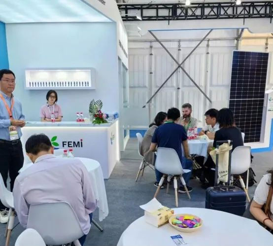 飞米新能源推出高效组件、光储一体解决方案,吸引了多个国家和地区的经销商和采购商,其中热销的410W全黑光伏组件和高效双面组件,是专为高端客户和工商业市场打造的优质产品。